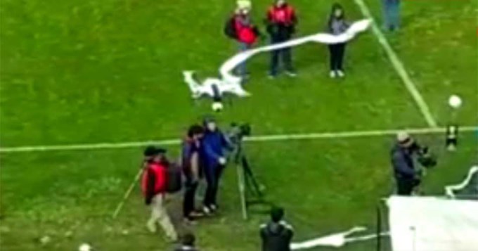 Insólito: Hinchas "bajan" drone con una serpentina y cae en picada