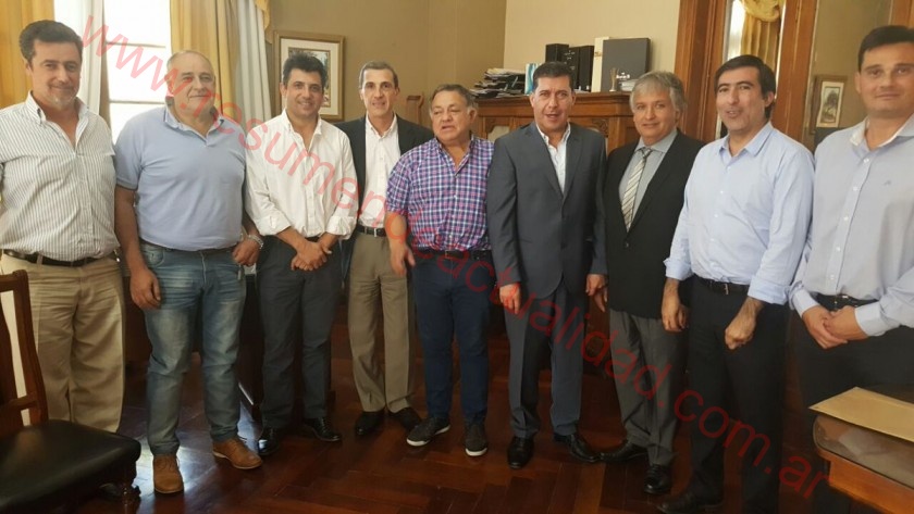 Junto al gobernador Sergio Casas y el vicegobernador Néstor Gabriel Bosetti, participaron de la reunión los ministros de Infraestructura Juan Velardez y de Hacienda Ricardo Guerra, el vicepresidente primero de la Cámara de Diputados Oscar Chamía, el presidente del Bloque de Diputados Justicialistas Marcelo del Moral, el titular de EDELAR Carlos Fernández y el titular del EUCOP Remo Bolognesi.
