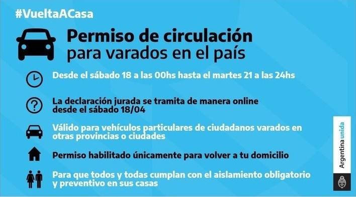 Habilitan permiso excepcional para circular a varados en el país