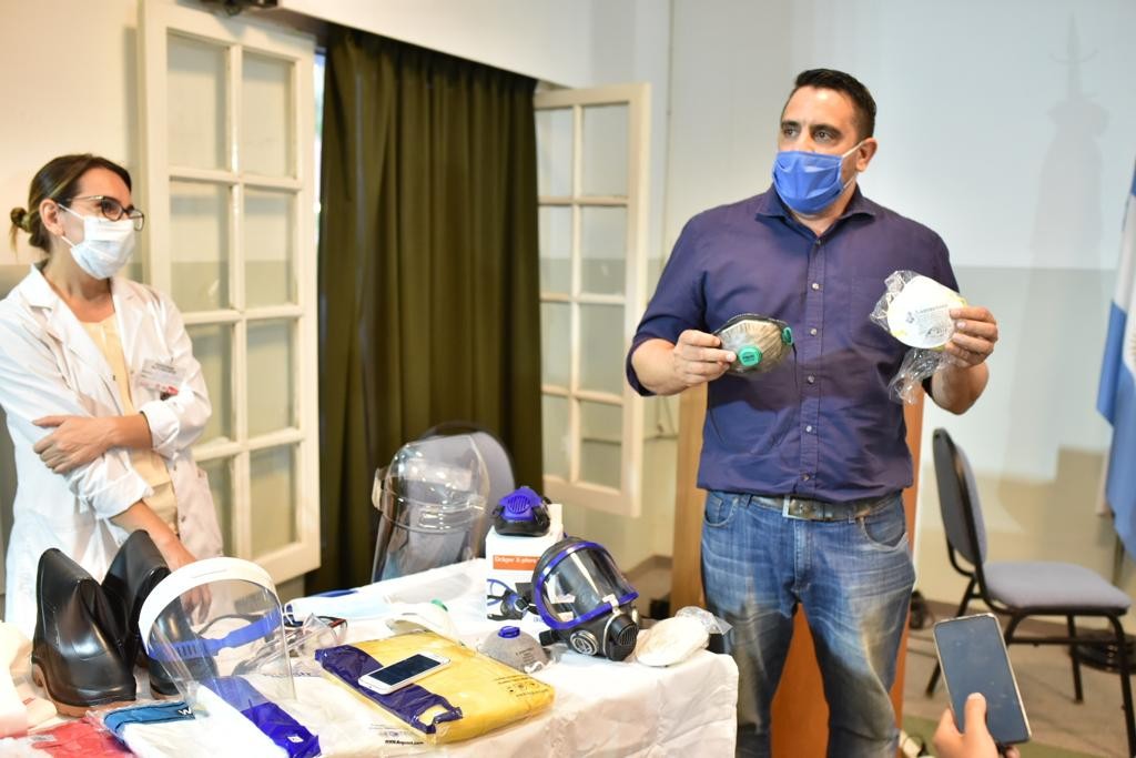 Explicó además que si un paciente llega a la guardia como sospechoso de ser portador del COVID19, al médico se le entrega la indumentaria correspondiente compuesta por la cofia, la máscara, el barbijo N95, los mamelucos que vienen en diferentes micrones, es decir, de diferente impermeabilidad, y que hay en stock 1.000 de un tipo y 2.500 de otro a lo que se suman las batas hemorepelentes que permiten que los fluidos impacten en la tela y no pueden penetrar a través de ella, destacando que las mismas son producidas en la provincia; así como la adquisición de lentes que no se empañan y el uso de guantes.