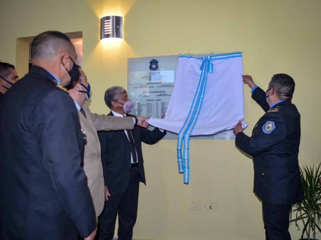 Las autoridades policiales, encabezadas por el jefe de la institución, Rubén Garay; el secretario de Seguridad, Pedro Fuentes; el jefe de la Comisaría 7ma., Crio. Eduardo Bravo fueron acompañadas por la tirular de UECI, Silvina Santángelo Carrizo y la directora Concepción Cano del Ministerio de Seguridad, Justicia y Derechos Humanos.