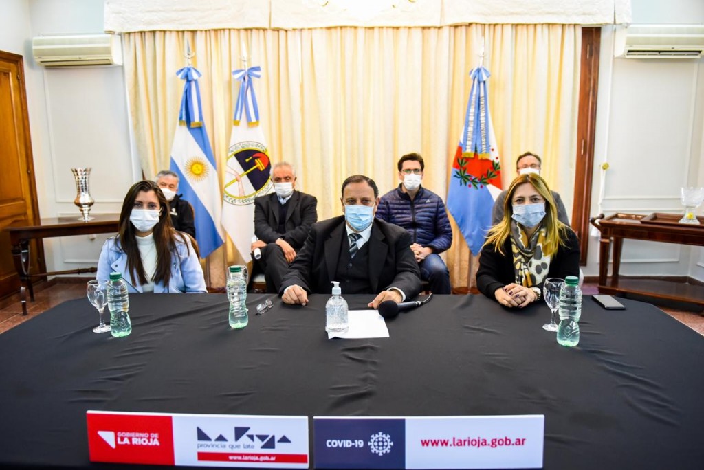Acompañaron al gobernador en la conferencia, la vicegobernadora Florencia López, el ministro de Salud Juan Carlos Vergara, el Secretario de la Gobernación Armando Molina, el Jefe de Gabinete Juan Luna y la Vicepresidenta primera de la Cámara de Diputados Teresita Madera.