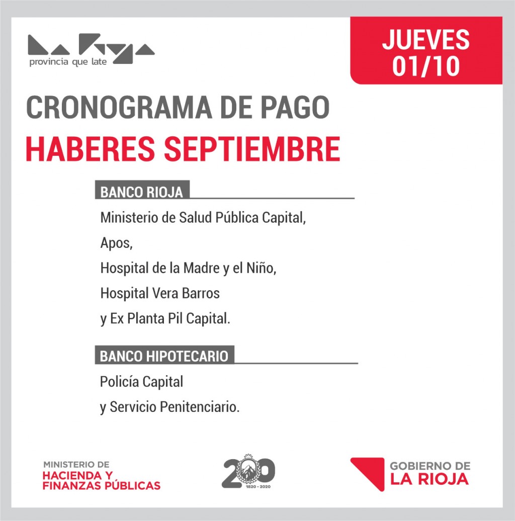El Ministerio de Hacienda de la provincia informó el cronograma de pago previsto para este jueves 1 de octubre para los agentes de la Administración pública provincial y municipal.