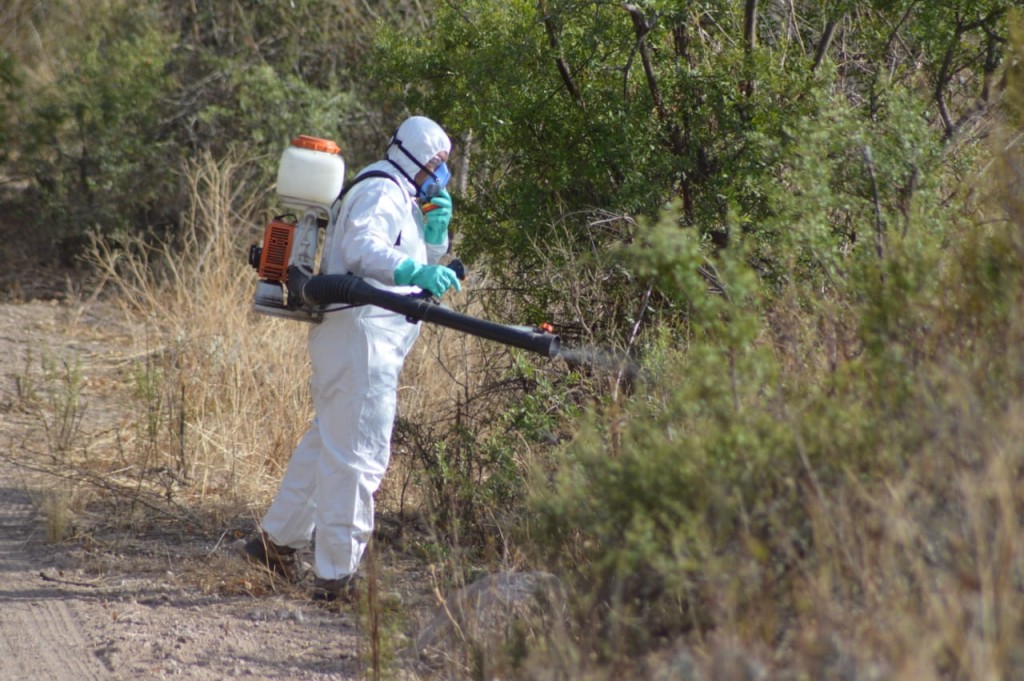 Autoridades que integran el comité de emergencia del SENASA y la Secretaría de Agricultura de La Rioja junto a productores continúan con trabajos de fumigación aérea y terrestre para evitar su avance y mayores perdidas económicas.