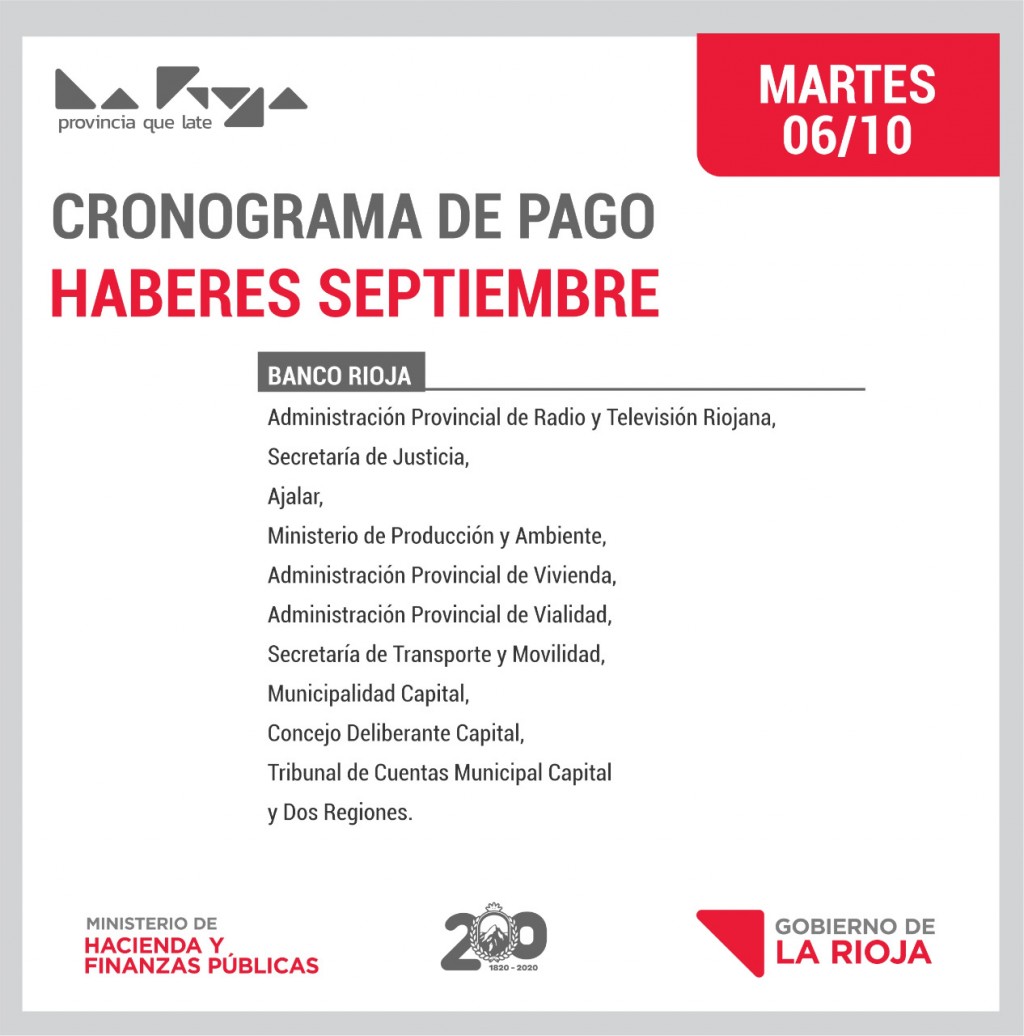 El Ministerio de Hacienda de la provincia informó el cronograma previsto para este martes 06 de octubre.