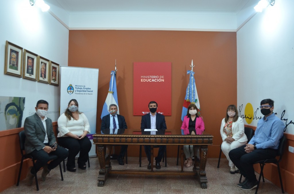 El Ministro de Educación Ariel Martínez, junto a la Secretaria de Gestión Educativa Zoraida Rodríguez, la Secretaria de Planeamiento e Innovación Educativa Karen Navarro, Duilio Madera y José Luis Ávila, Secretarios de Políticas Socioeducativas y Gestión Administrativa, respectivamente, firmaron este llamado para que junto a los representantes de los gremios docentes, se logre avanzar en fortalecer una educación integral, igualitaria e inclusiva para todas y todos los riojanos.