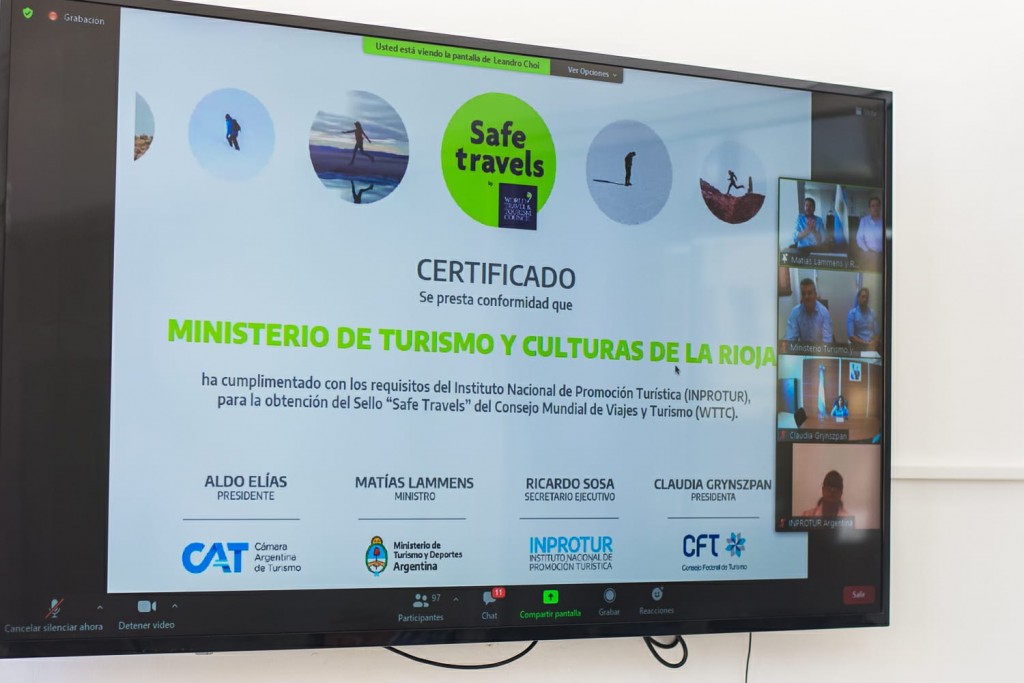 Esta distinción responde a que La Rioja cumple con los protocolos globales de higiene y sanitización alineados, también, con los del Ministerio de Turismo y Deporte de la Nación.
