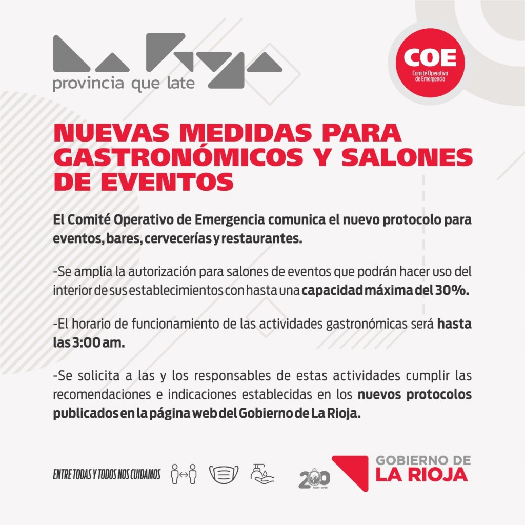 El Comité Operativo de Emergencia comunica el nuevo protocolo para eventos, bares, cervecerías y restaurantes.