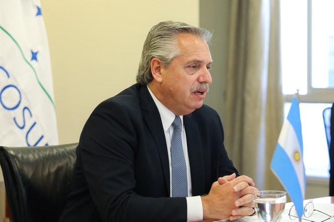 "Tengo el sueño de un Mercosur distinto, convertido en nave insignia del desarrollo sustentable, innovación tecnológica e inclusión social", dijo Alberto Fernández al exponer en forma virtual desde la residencia de Olivos.