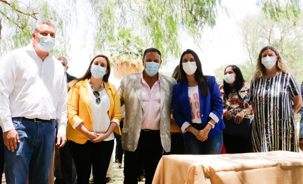 El gobernador Ricardo Quintela, junto a la intendenta Virginia López y demas autoridades provinciales encabezaron un acto de firma de convenios y entrega de beneficios en el Parque La Gota, ubicado en Aimogasta, departamento Arauco. El gobernador manifestó la necesidad de federalizar los recursos y recalcó que “en este gobierno buscamos dignificar a las y los trabajadores”.