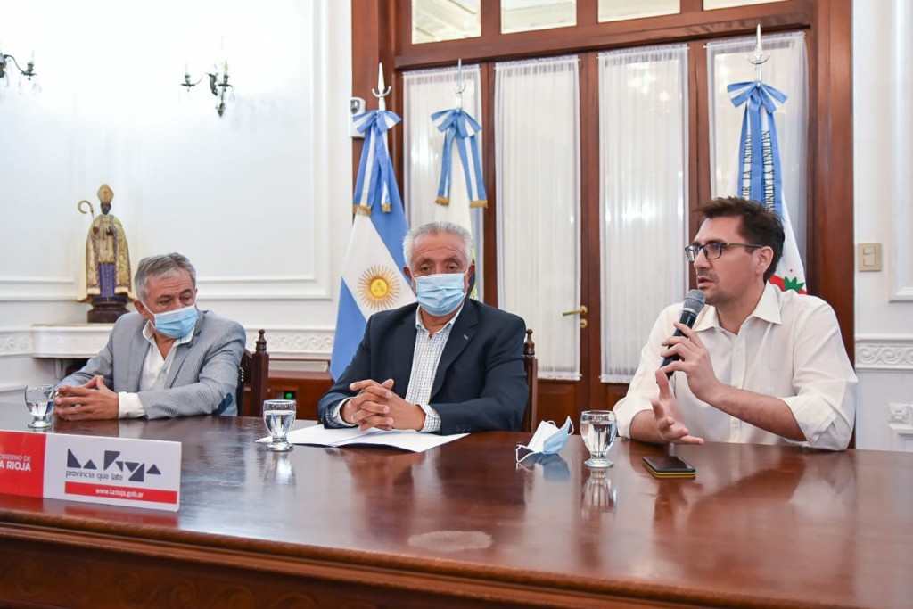 El jefe de Gabinete Juan Luna, junto al secretario general de Gobierno Armando Molina y el ministro de Salud Juan Carlos Vergara, en conferencia de prensa brindaron algunas recomendaciones a la población riojana, apelando a la responsabilidad social e individual por la cercanía de las fiestas de fin de año.