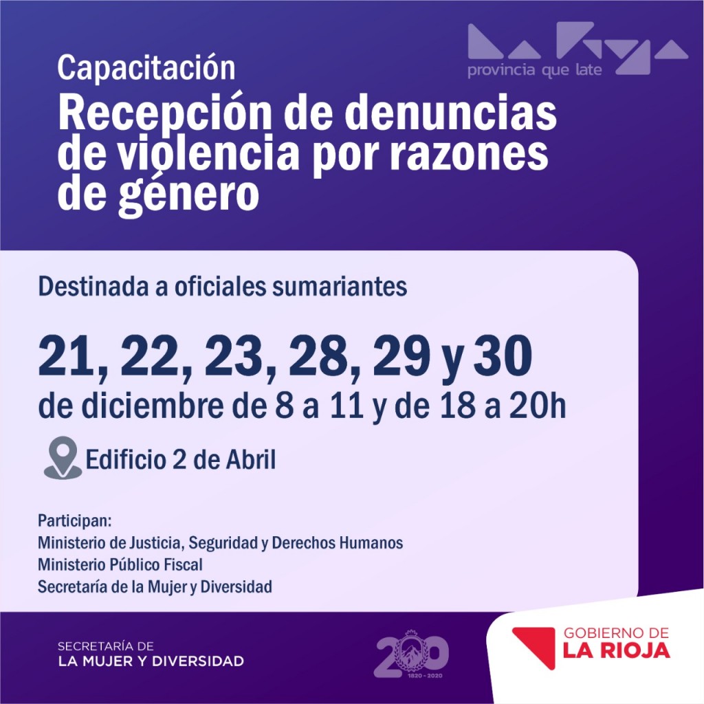 La Secretaría de la Mujer, junto al Ministerio de Justicia, Seguridad y Derechos Humanos y el Ministerio Público Fiscal brindarán una capacitación sobre recepción de denuncias de violencia por razones de género.