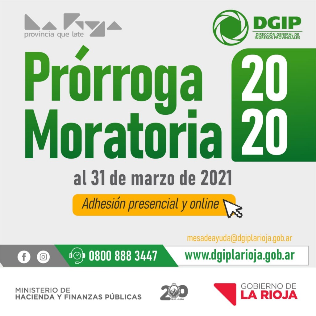 El Gobierno de La Rioja, a través del Ministerio de Hacienda y Finanzas Públicas, informa a los contribuyentes la prórroga de la Moratoria 2020.