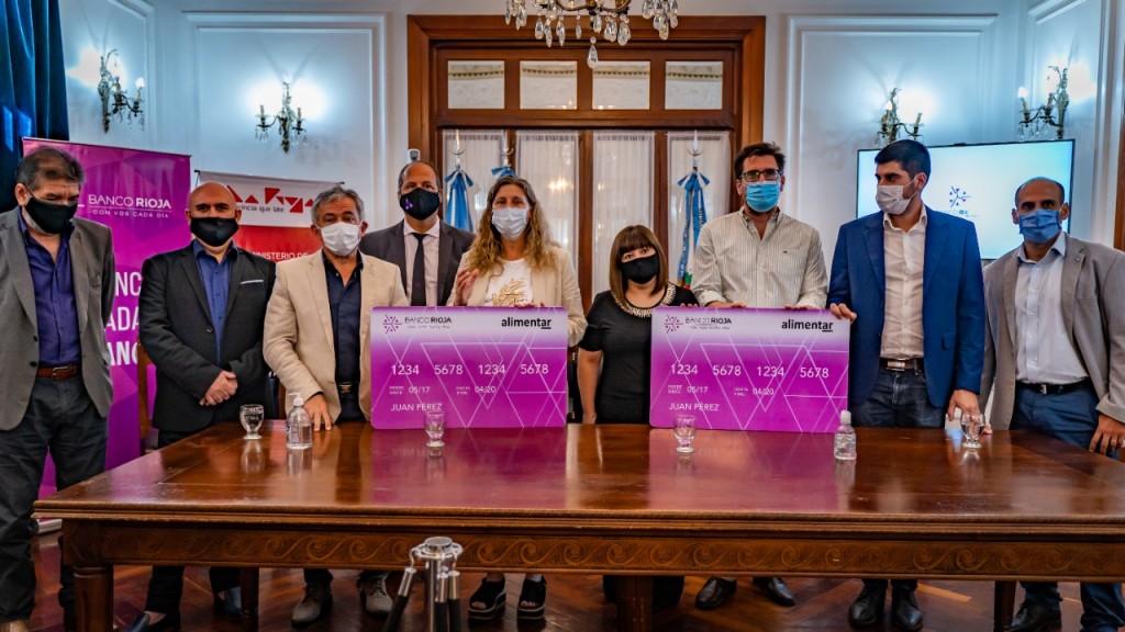 Este viernes se realizó una conferencia de prensa para anunciar la entrega de las más de 15 mil tarjetas a beneficiarias y beneficiarios de toda la provincia. Estuvieron presentes el jefe de Gabinete, Juan Luna; la ministra de Desarrollo, Igualdad e Integración Social, Gabriela Pedrali; el gerente de Banco Rioja, Raúl Cabral; el secretario general de Gobierno, Armando Molina; el secretario de Inclusión y Desarrollo Social, Alfredo Menem, la subsecretaria de Seguridad Alimentaria, Cecilia Leguiza e integrantes del Directorio de Banco Rioja.