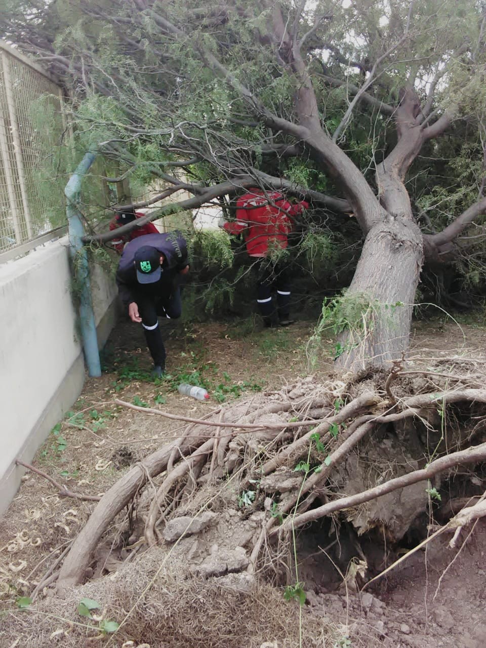 Desde el cuartel de Bomberos Voluntarios trabajaron en la intersección de las avenidas Perón y Facundo Quiroga con la caída de un árbol en la vía pública lo que se replicó el España y Guido, España y Bulnes, Pellegrini entre Teniente 1° Ibáñez y Nápoles, Saavedra y Laprida, barrio Néstor Kirchner, avenida Luis Vernet y Ganso Verde, Homero Coronel Montes y Carlos Quiroga; mientras que en el barrio Urbano 27 manzano 1220 se produjo la caída de árbol sobre una vivienda y en Santa Rosa y Las Llamas y Rivadavia y Perón sobre un automóvil.