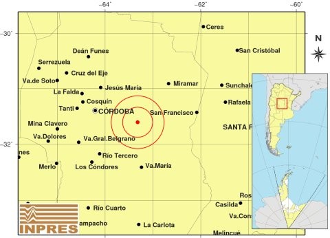 Según lo informado por el Instituto Nacional de Prevención Sísmica (Inpres), el sismo se produjo a las 06.43 a unos 39 kilómetros al oeste de Córdoba, a unos 5 kilómetros al sudoeste de Tanti. El epicentro del movimiento telúrico se produjo a unos 10 kilómetros de profundidad.