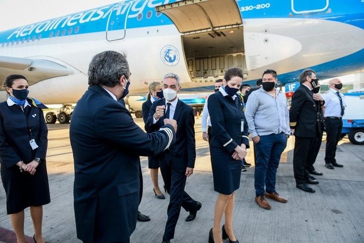 El presidente de la compañía de bandera, Pablo Ceriani, anunció esta mañana en su cuenta Twitter que la partida del "vuelo AR1064 de Aerolíneas Argentinas con destino a Rusia está confirmada para hoy a las 23" y agregó que "la cuarta de esas operaciones es muy importante para hacer frente al Covid-19".