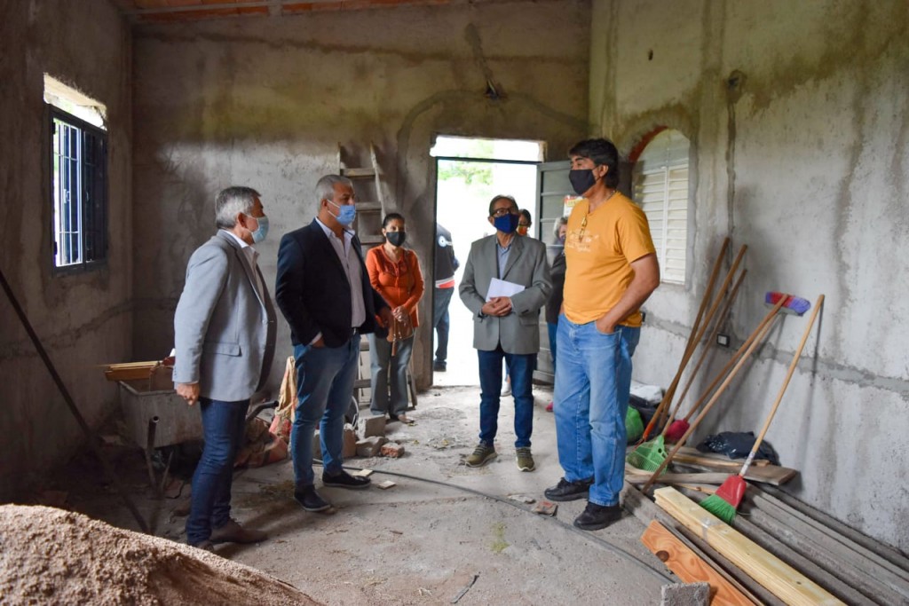 Autoridades provinciales encabezadas por el secretario general de la Gobernación, Armando Molina y el titular de AJALaR, Ramón Vera constataron el avance de obra de un SUM que se construye en la capilla San Eugenio de Mazenod en el barrio San Vicente de esta ciudad.