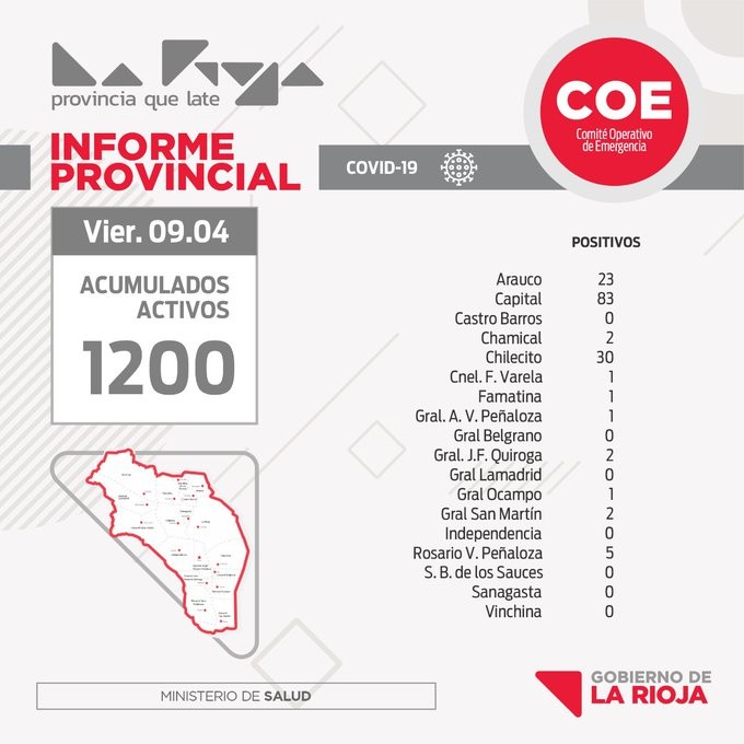 El Ministerio de Salud de La Rioja detalló en su informe diario que este viernes se procesaron 682 muestras, siendo 151 positivas para COVID-19.