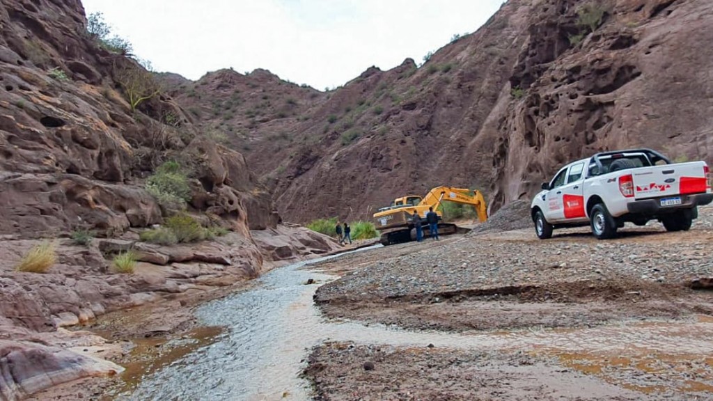 Luego de una visita de trabajo realizada por el ministro del área, Adolfo Scaglioni junto al secretario de Agua, Edgardo Karam, se dispuso de una retroexcavadora de gran porte para realizar excavaciones en el cauce del río, que tienen como objeto determinar las condiciones del subálveo y así evaluar las posibles estructuras a construir.