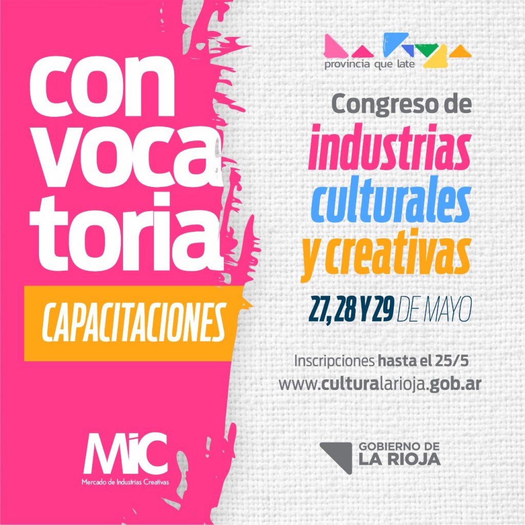 El Congreso de las Industrias Culturales y Creativas es una de las políticas públicas de la secretaría de Culturas que tienen como objetivo impulsar al sector productivo cultural y creativo mediante su respaldo, circulación y sostenibilidad. El mismo se realizara de manera virtual los días 27, 28 y 29 de mayo.