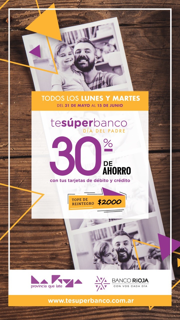 El programa del Gobierno de la provincia de La Rioja y Banco Rioja para aliviar el bolsillo de los riojanos y riojanas y promover la reactivación del comercio local comenzará hoy 31 de mayo y se extenderán hasta el 15 de junio, con el propósito de agasajar a todos los padres riojanos en su día.