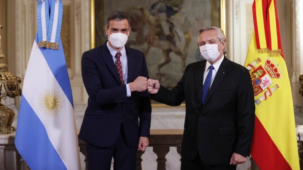 El presidente Alberto Fernández y el jefe de Gobierno español, Pedro Sánchez, ratificaron los vínculos de ambas naciones y llamaron a hacerlos "aún más sólidos" a uno y otro lado del Atlántico para lograr mayores inversiones, una distribución más equitativa de las vacunas contra el coronavirus y el apoyo necesario para que Argentina pueda obtener una reprogramación de los vencimientos de deuda con organismos multilaterales de crédito.