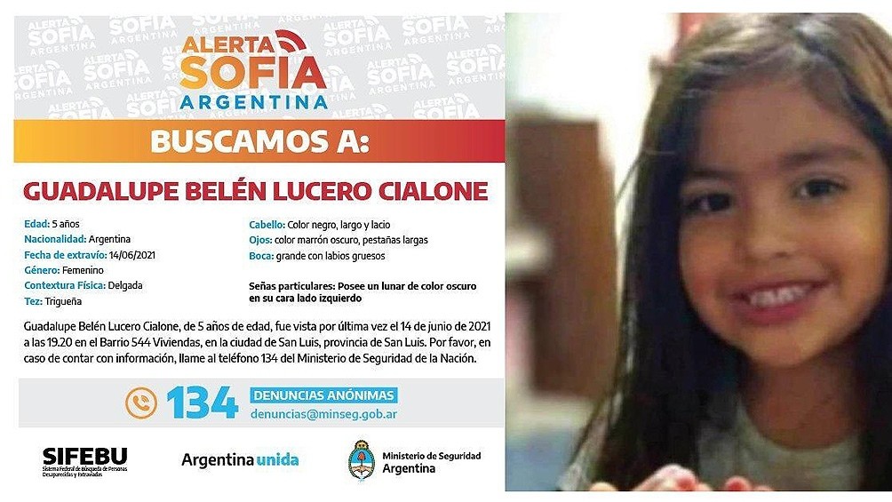 Los operativos de rastrillajes y allanamientos realizados durante este martes en búsqueda de la niña Guadalupe Belén Lucero de 5 años, quién desapareció el lunes de la casa de su tía en el barrio 544 Viviendas en el sur de la capital de San Luis, no dieron con la pequeña, mientras vecinos repartieron volantes y cortaron la ruta 7 en reclamo de su aparición.
