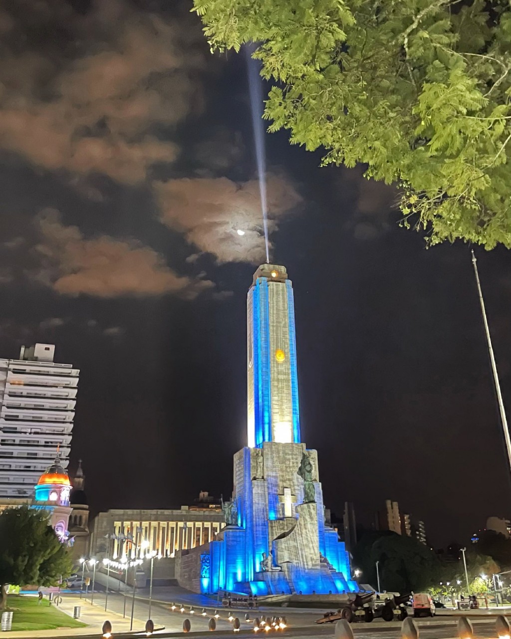 “Pero a la vez tenemos el lujo de tener el Monumento iluminado de esta manera, con un haz de luz que se prolonga al infinito, como nuestra Bandera y como la imagen de Belgrano”, añadió el intendente.