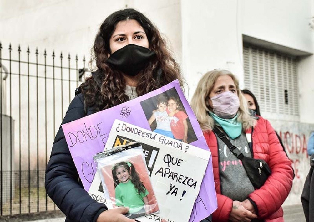 “¿Dónde está Guadalupe? ¡Devuélvanla ya! ¡El estado es responsable!”, fue el cartel que encabezó la manifestación y que se expuso frente al Poder Judicial reclamando resultados al juez de la causa. Ariel Parrillis.