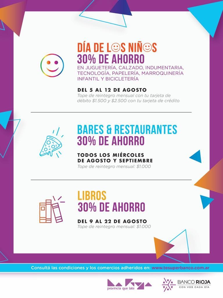 Para impulsar el consumo y acompañar la reactivación de todos los segmentos de la economía riojana, el Gobierno de La Rioja a través de Banco Rioja presentó las nuevas ediciones de “Te Super Banco” para el mes de agosto: Bares & Restaurantes; Día de l@s niñ@s y Libros.