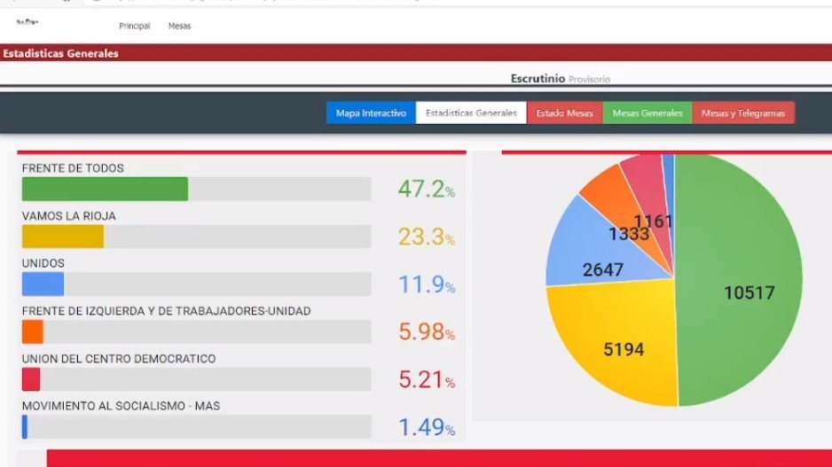 En el primer corte dado a conocer por las autoridades electorales de la provincia, el Frente de Todos aventaja por más de 20 puntos al frente opositor "Vamos La Rioja" y siguen llegando los datos, aunque ya se marca una tendencia.