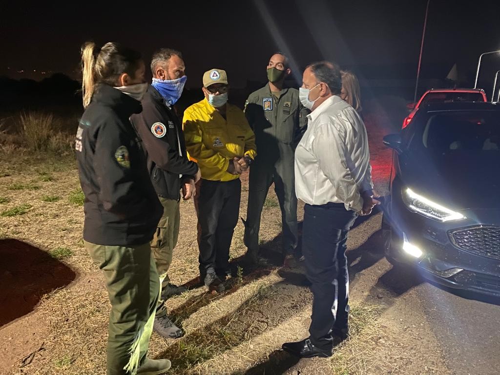 Quintela planteó que se puso en contacto con el coordinador regional (Centro) del Servicio Nacional de Manejo del Fuego, Andrés Bosch, quien arbitraría los medios necesarios para conseguir un avión hidrante y un helicóptero hidrante, que se sumarían a los que actualmente se están usando y poder sofocar más rápidamente el incendio.