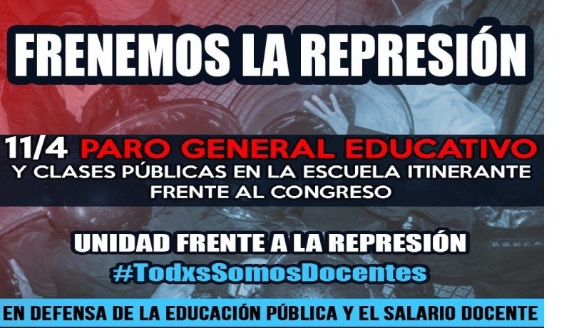 Cabe recordar, que ante los graves hechos de represión, los sindicatos nacionales docentes convocaron a este paro nacional. En La Rioja, la modalidad será sin asistencia a los lugares de trabajo, concentración en plaza 25 de mayo a partir de las 10 horas y movilización, en el caso de AMP.