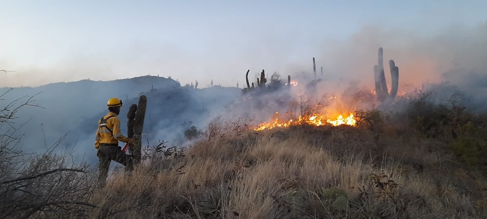 La Subsecretaría y la Dirección de Defensa Civil de la Provincia se encuentran coordinando tareas con sus pares de la provincia de Catamarca, por el incendio que se desarrolla en cercanías de cuesta La Cébila, ruta 60, más precisamente en el paraje El Salado.