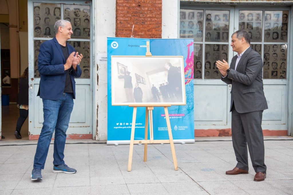 El encuentro tuvo lugar esta tarde en la Plaza Declaración Universal de Derechos Humanos de la ex ESMA y contó con la participación del ex mandatario, quien estuvo acompañado en el escenario por el Secretario de Derechos Humanos, Horacio Pietragalla Corti. También estuvieron presentes el secretario de Justicia, Juan Martín Mena y la ministra de Mujeres, Géneros y Diversidad, Elizabeth Gómez Alcorta; además de funcionarios y funcionarias de la Secretaría de Derechos Humanos.
