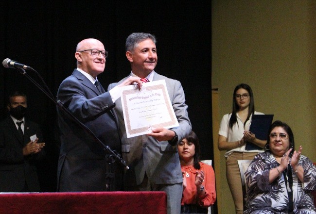 El acto desarrollado en Sala Académica Oscar Quiroga Galindez, en la mañana de este lunes, comenzó con el traspaso de mando por parte del y la flamante rector y vicerrectora electo y electa Daniel Quiroga y María Corzo, respectivamente, por parte del ahora ex rector y vicerrector, Fabián Calderón y José Gaspanello.
