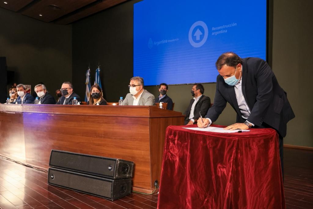 El jefe de Estado estuvo acompañado por los ministros de Desarrollo Productivo, Matías Kulfas; Economía, Martín Guzmán; de Interior, Eduardo de Pedro; y Ambiente y Desarrollo Sostenible, Juan Cabandié; los secretarios General de la Presidencia, Julio Vitobello; Energía, Darío Martínez; Industria, Economía del Conocimiento y Gestión Comercial Externa, Ariel Schale; Minería, Fernanda Ávila; y el titular del Banco Nación, Eduardo Hecker.