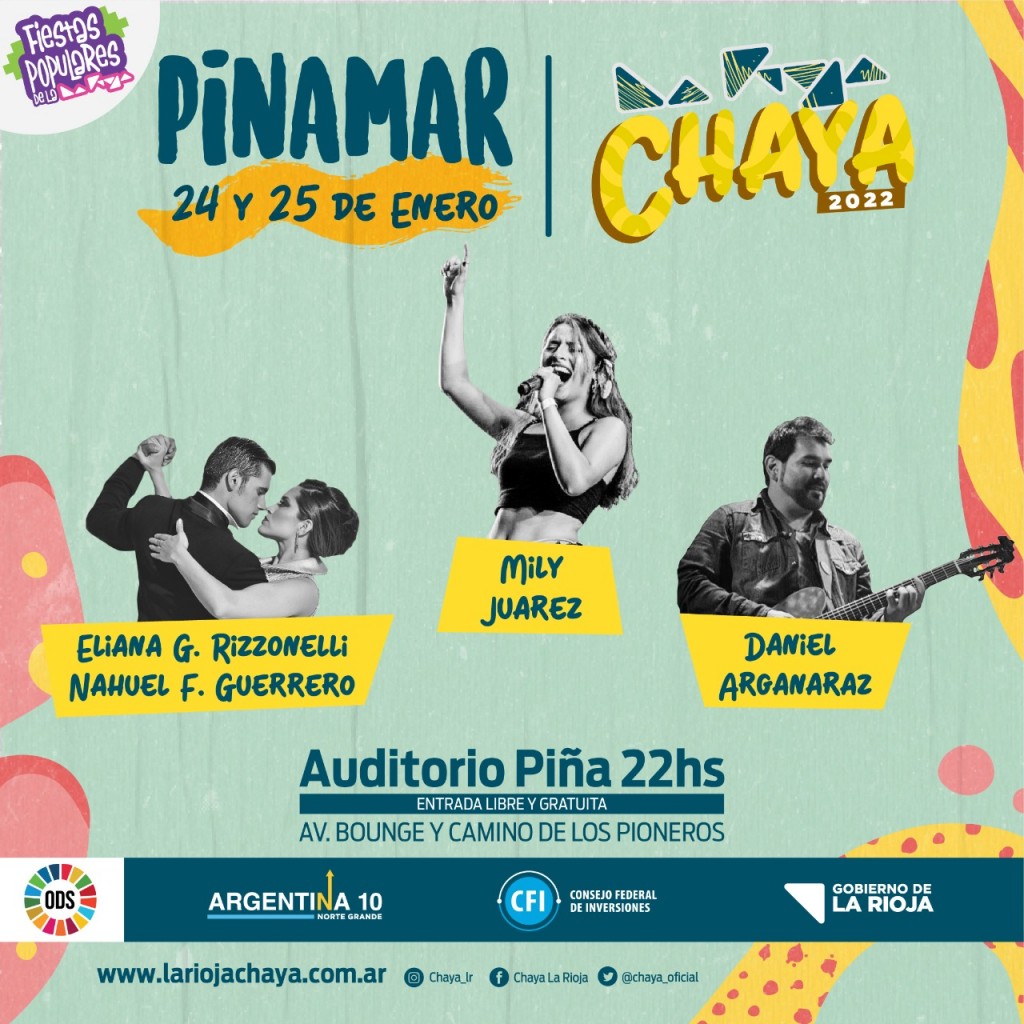 Este lunes 24 de enero y martes 25, a las 22, en el Auditorio Piña, de Pinamar el gobierno provincial mostrará los atractivos turísticos de La Rioja a quienes visitan esa parte de la Costa Argentina. Además el público podrá disfrutar de la presentación de La Chaya 2022 con shows en vivo. Habrá degustaciones de productos regionales y se podrán apreciar artesanías.