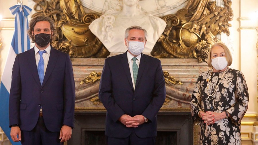 El presidente Alberto Fernández y el ministro de Relaciones Exteriores, Comercio Internacional y Culto, Santiago Cafiero, recibieron este martes en la Casa Rosada las cartas credenciales de 20 nuevos embajadores y embajadoras recientemente designados ante Argentina.
