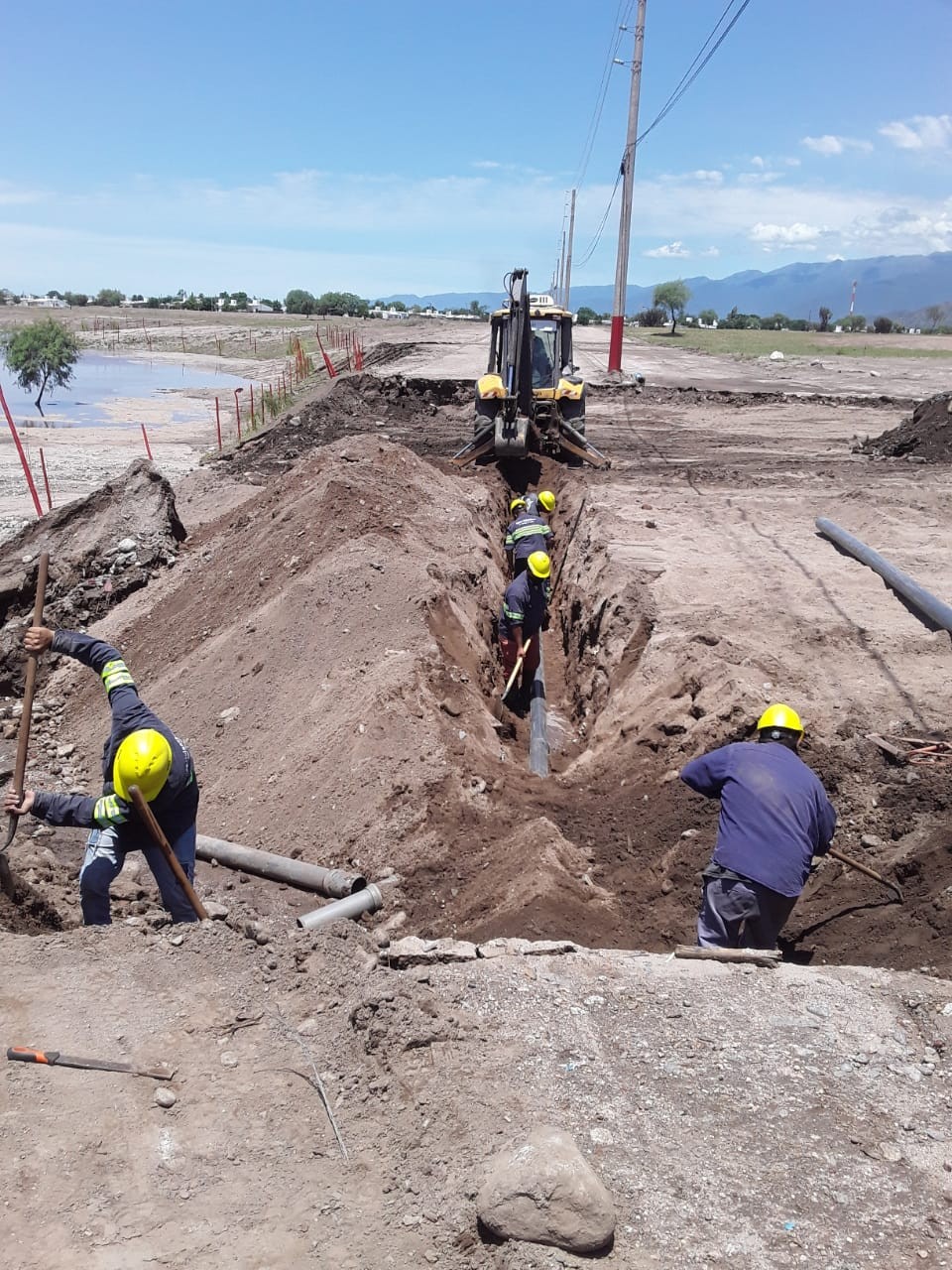 Las cuadrillas de Aguas de La Rioja realizaron la cobertura de cañería que quedó expuesta en el parque de la Familia. El agua socavó una parte del parque, llevando parte del suelo y levantó la cañería.