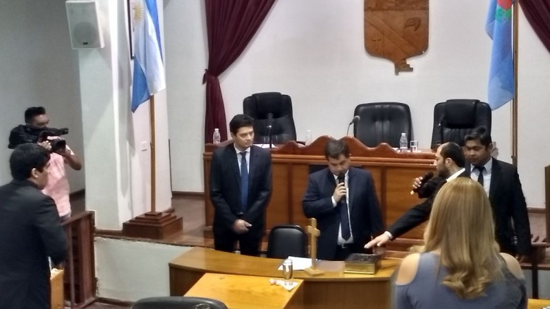 En la jornada de este miércoles se produjo la asunción de los concejales Renzo González y Matías Soria, en lugar de Khalil Aleua y Gabriela Amoroso, respectivamente. Luego de un cuarto intermedio para que se produzca el ingreso de los flamantes ediles, se avanzó en el orden del día siendo los temas más relevantes el ingreso de la Ordenanza Impositiva, el pedido de actualización tarifaria de taxis y remises, como así también la asunción de las autoridades constituidas en la sesión 933.