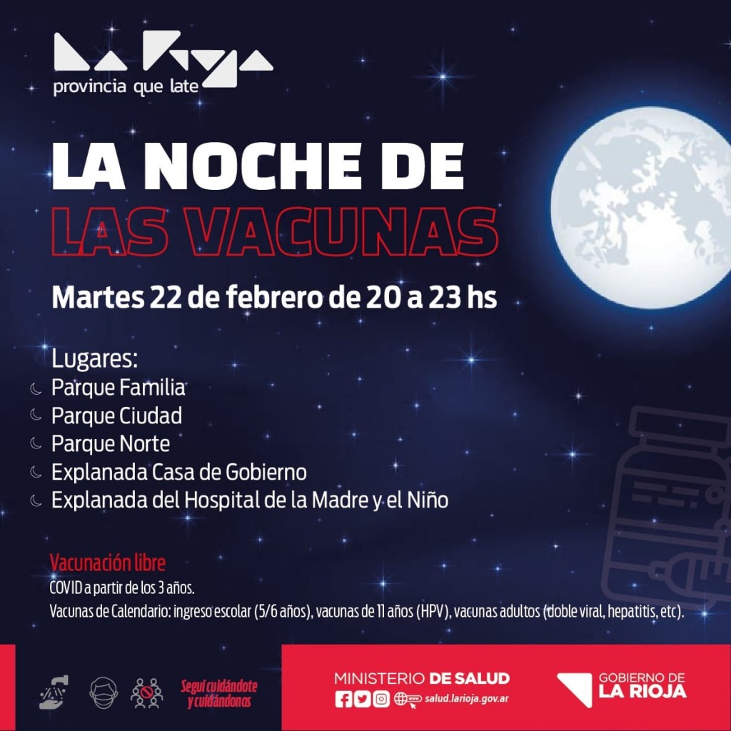 Este martes 22 de Febrero el gobierno provincial realizara la vacunacion libre desde las 20 a 23 horas en distintos puntos de la Capital.