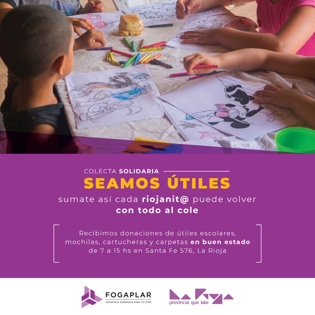 Quedando pocos días para el regreso a clases, la entidad financiera que integra Mejor Riojanas tomó la iniciativa para colaborar con cientos de familias en este importante día. Las y los interesados en formar parte, pueden acercar sus donaciones a la sede de Fogaplar, en calle Santa Fe 576, en el horario de 7 a 15.