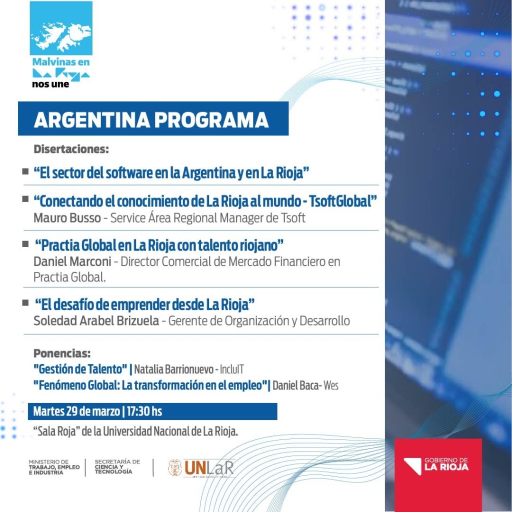 El Ministerio de Trabajo, Empleo e Industria, mediante la Secretaria de Ciencia y Tecnología, llevará a cabo el encuentro “Argentina Programa”. El mismo se realizará el martes 29 de marzo del 2022 a las 17 horas en la Sala Roja de la Universidad Nacional de La Rioja.
