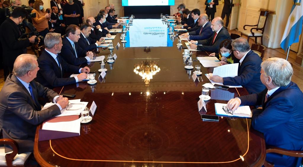 El gobernador Ricardo Quintela participó este miércoles de una reunión celebrada con el presidente Alberto Fernández, en el Salón Eva Perón de Casa Rosada, donde 19 mandatarios provinciales acordaron enviar una nota a la Corte Suprema de Justicia para dejar en claro cuál es su postura sobre el tema de la Coparticipación otorgada a la Ciudad de Buenos Aires.