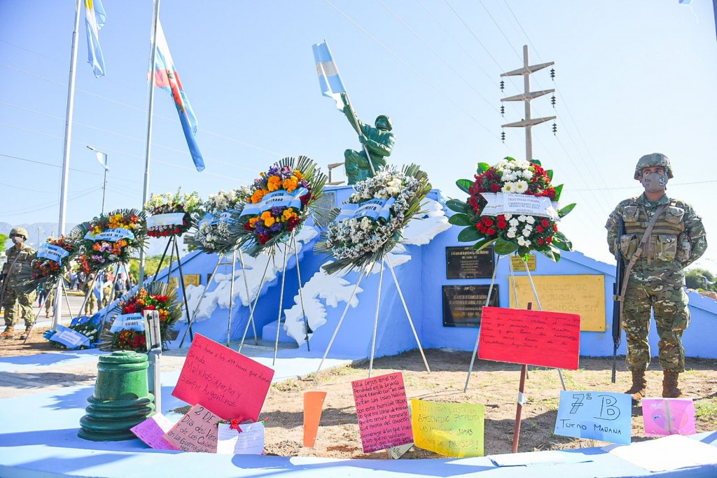 Posteriormente se hizo el descubrimiento de placas en el Monumento a los Caídos y las ofrendas florales para dar paso a un minuto de silencio en memoria de los veteranos y caídos en la guerra de Malvinas.