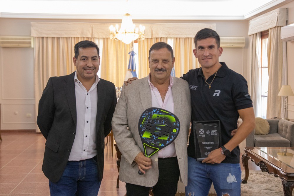 El encuentro se concretó este martes, en la Residencia de gobernadores y participó el ministro de Desarrollo, Igualdad e Integración, Alfredo Menem, junto al flamante campeón del APT Máster Buenos Aires-Tour, Pablo Barrera. El deportista agradeció el apoyo brindado por el gobierno provincial para su participación en el torneo.