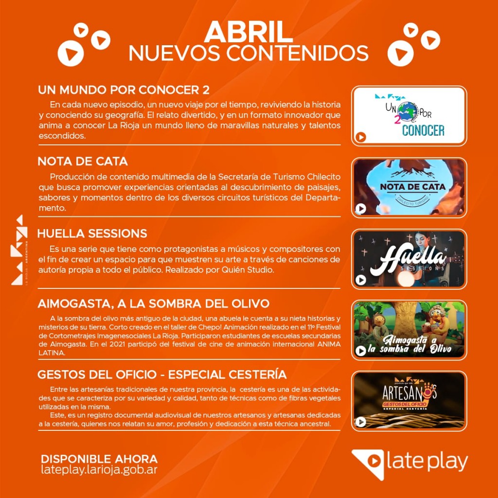 Lateplay, la plataforma de la Secretaría de Comunicación y Planificación Pública de la provincia, suma nuevos contenidos riojanos para ver.