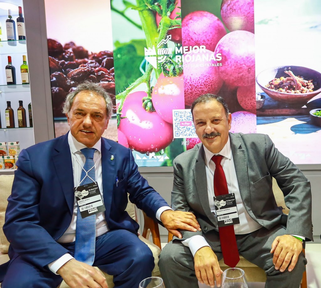El gobernador Ricardo Quintela y el embajador Daniel Scioli presentes en el stand de La Rioja en Anufood